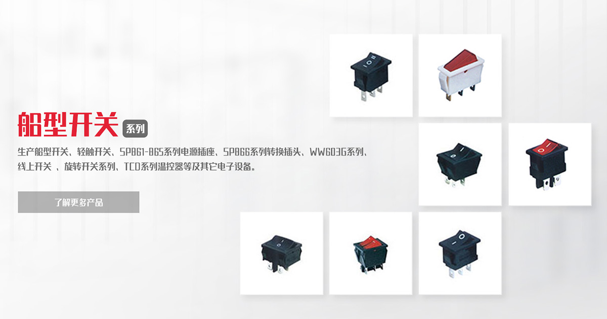 致力于船型開(kāi)關(guān)、負(fù)載開(kāi)關(guān)、輕觸開(kāi)關(guān)、微動(dòng)開(kāi)關(guān)等產(chǎn)品的研發(fā)、制造、銷(xiāo)售。